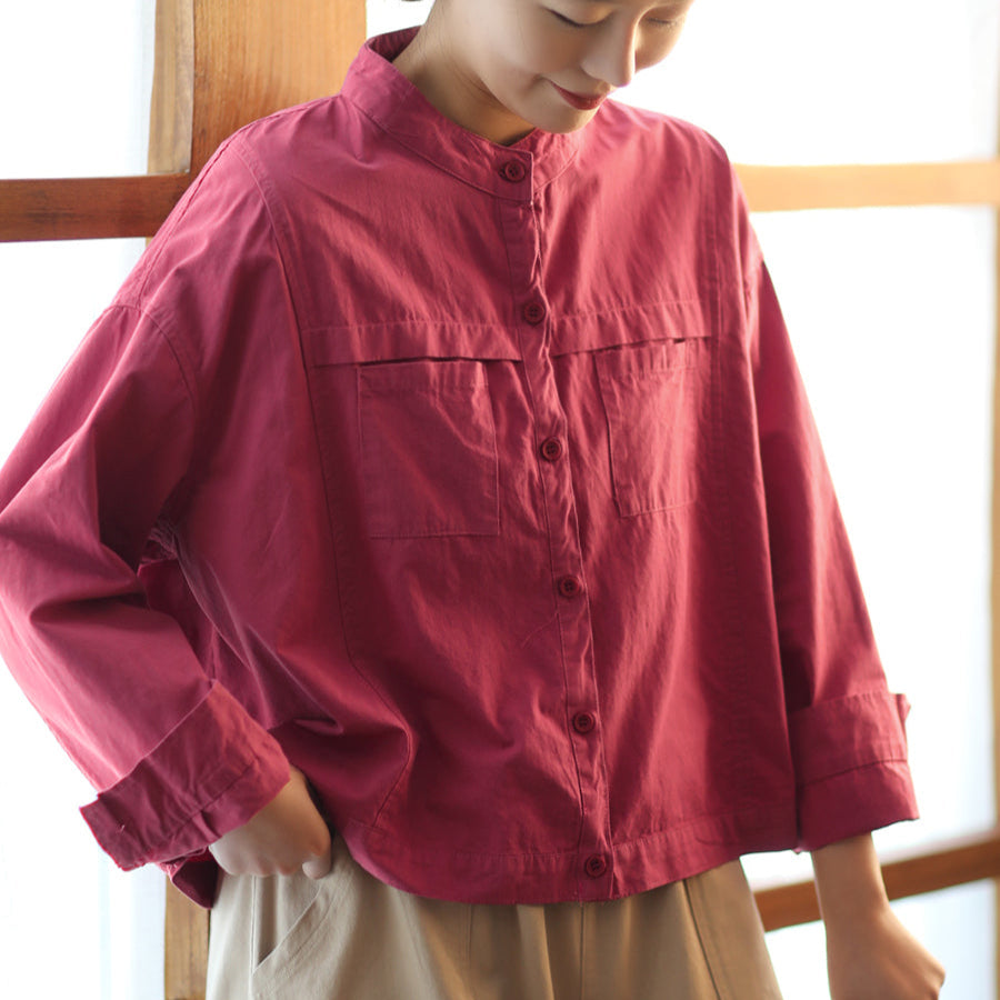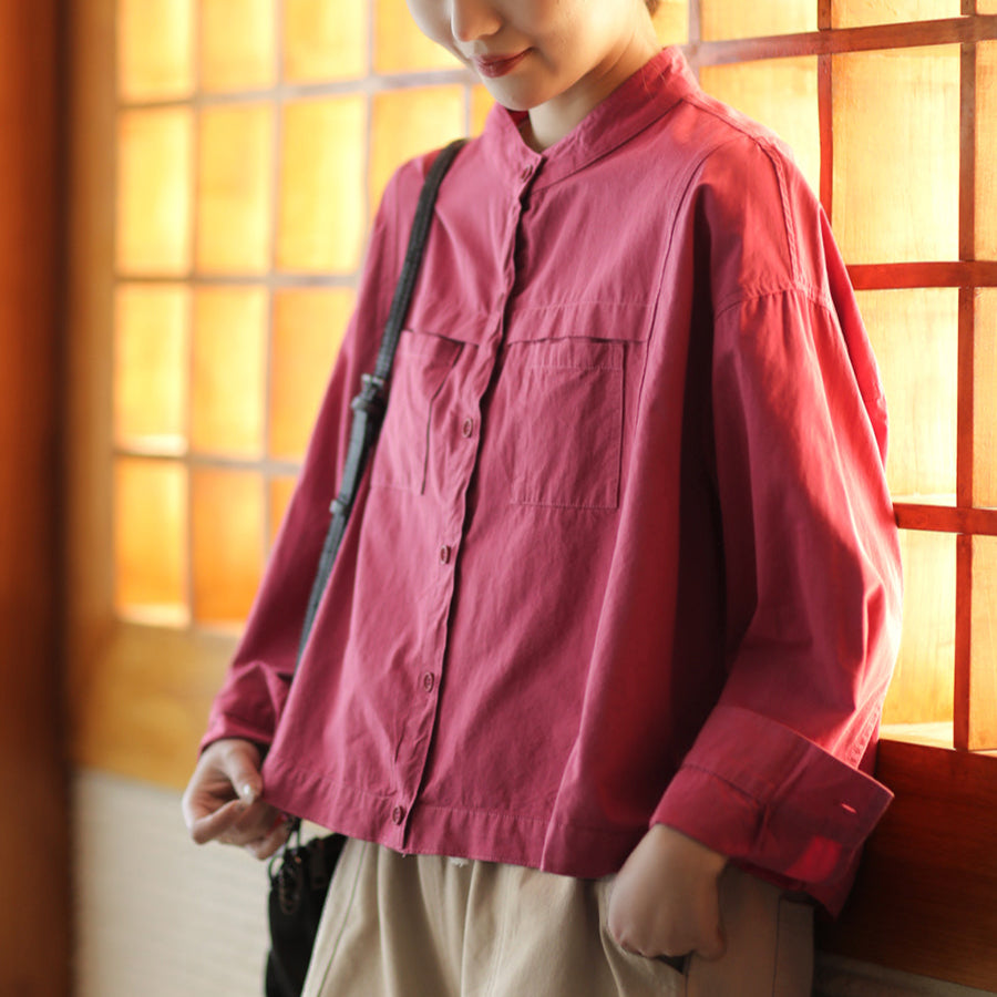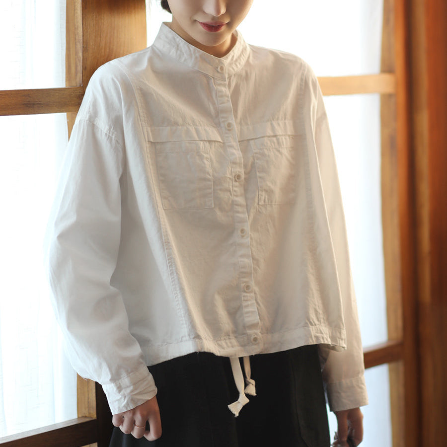 Chemise décontractée à boutons en coton vintage pour femme, color unie, printemps